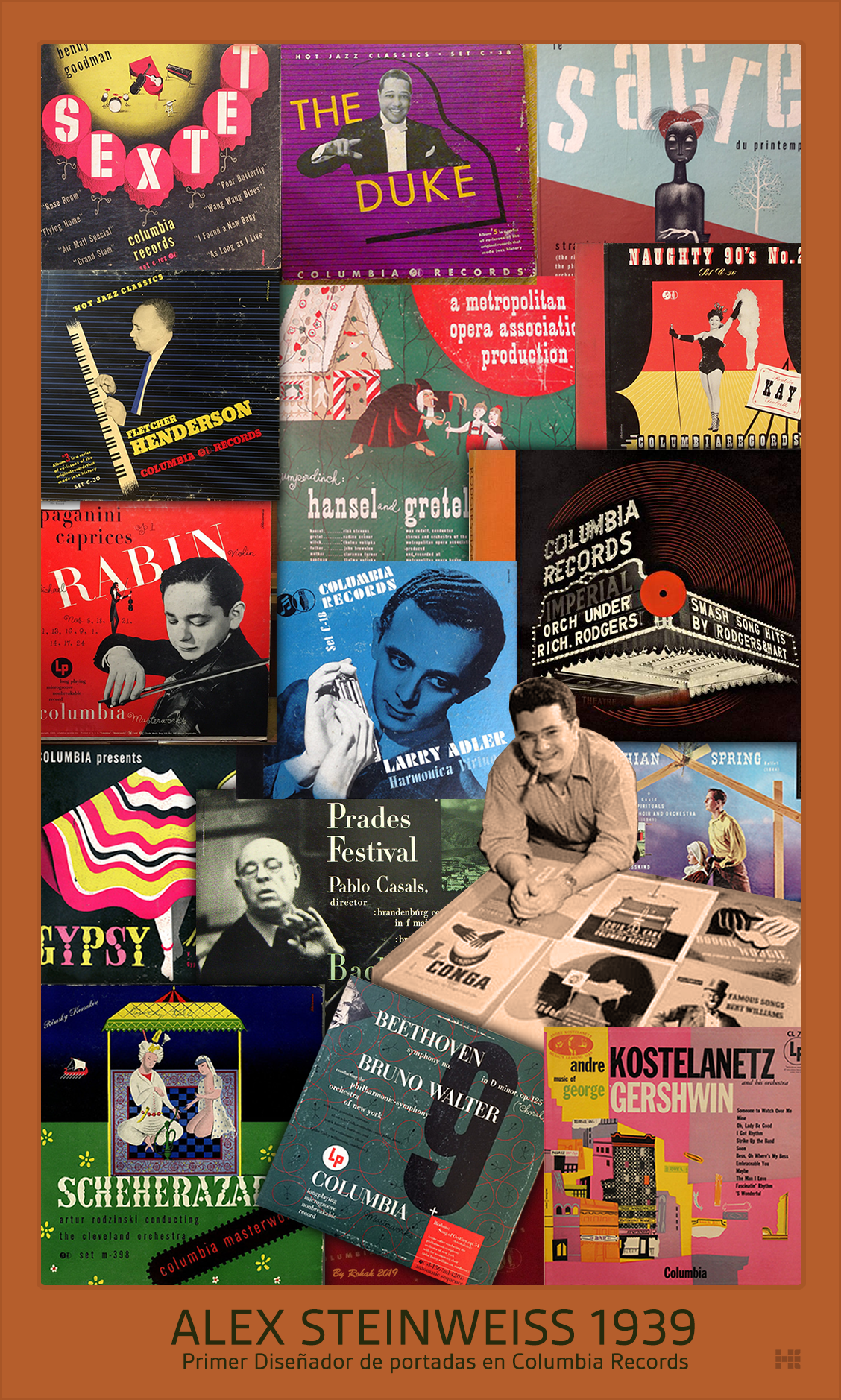 Prácticamente hasta que no se empezó a comercializar el Long Play de 33 rpm, los singles, solían entregarse en un sobrecito de papel con un amplio círculo central que permitía leer el título de la canción y el intérprete. Fue cuando el sello Columbia empezó a comercializar LPs, cuando Alex Steinweis hizo su primera portada para el disco de Richard Rodgers y Lorenz Hart - Imperial Orchestra Under Rich. Rodgers (COLUMBIA, 1939). Más tarde, Blue Note Records, tendría en sus filas al joven diseñador Reid Miles.