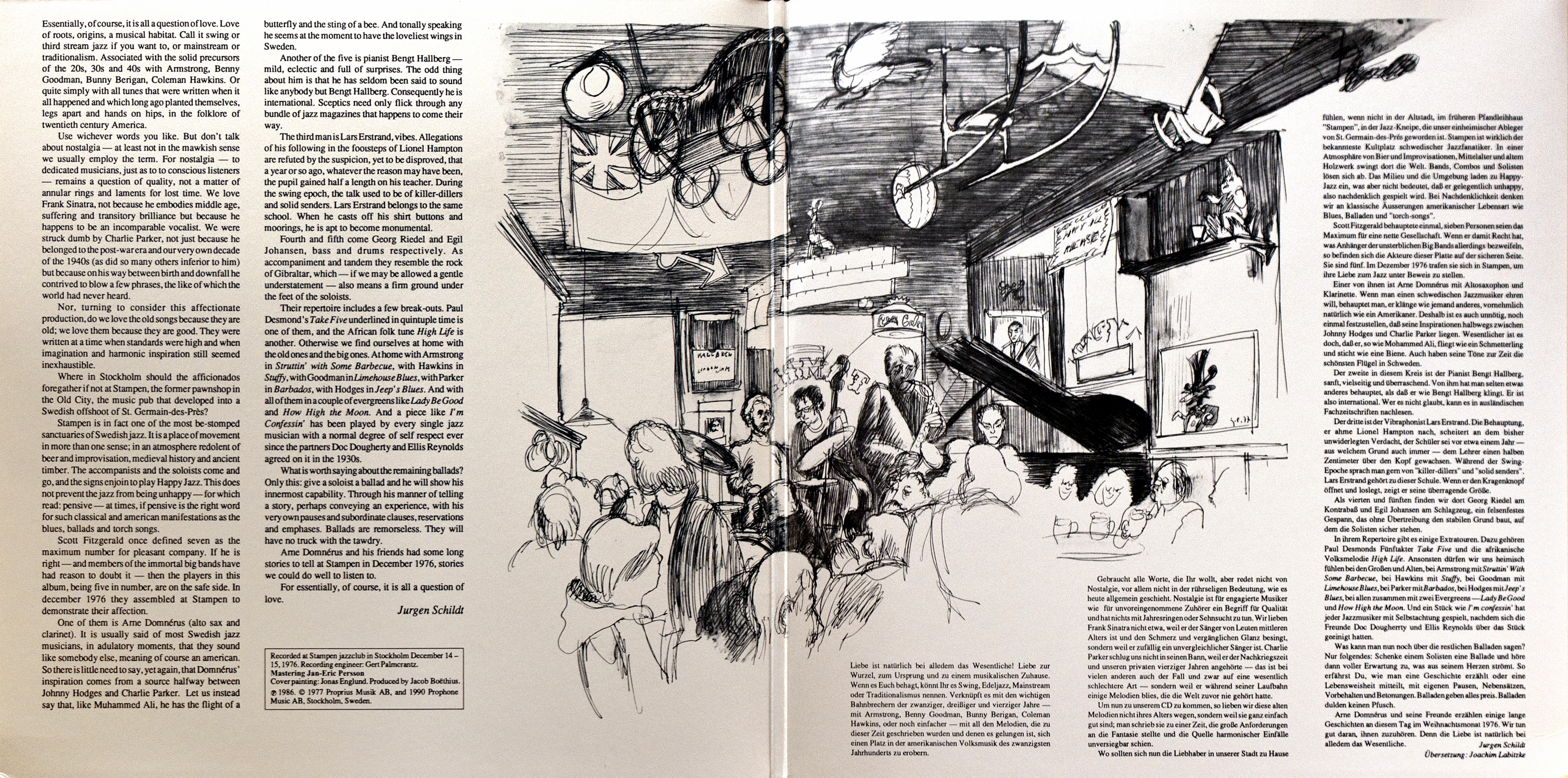 • Arne Domnérus (1924-2008): Líder, saxo alto y clarinete. Apodado “Dompan”, era uno de los grandes saxofonistas suecos, con un tono cálido, expresivo y muy influido por Benny Carter y Johnny Hodges. Su fraseo es elegante, preciso y lleno de swing, pero nunca frío. En este disco toca tanto con fuego como con lirismo.