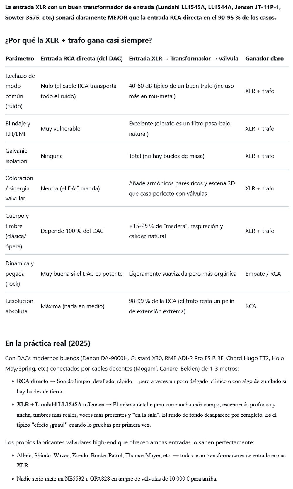 + ¿Qué tendrá mejor sonido en ese preamplificador valvular? ¿Entrada RCA o XLR?, de un buen DAC