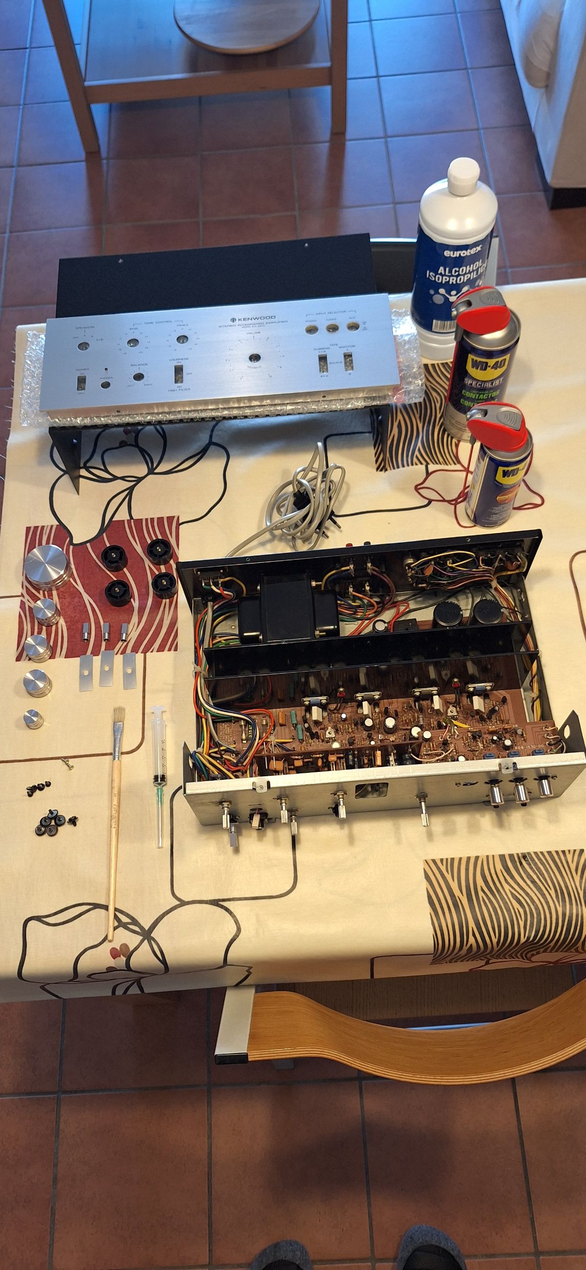 Hola, empezamos bien el año. Ayer dia 31 lo pasé limpiando y acondicionando un nuevo equipo que compré por Wallapop. Estaba bastante bien pero no puedo resistirme a "meterle mano". Y la verdad es que el tacto de los mandos mejoró bastante despues de una buena limpieza y "engrase" de potenciómetros. Me ha sorprendido lo bien que suena para el precio que tiene (pagué 130€). Estéticamente me gusta mucho y llevaba tiempo detrás de algo así, económico.