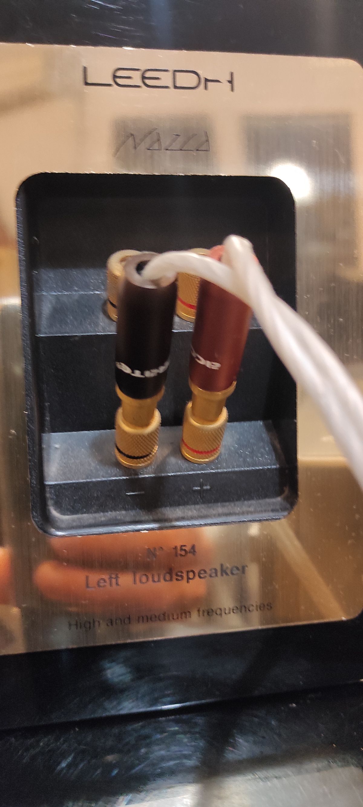 Tengo unos altavoces Leedh Nazca. He cambiado su extraño tweeter original piezoelectrico con gas, por otro tweeter de berilio. La caja tiene una sensibilidad de 90 db y funciona a 4 ohms. Le he puesto un filtro pasa altos con las siguientes características: