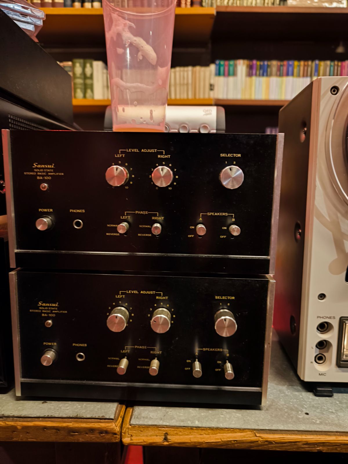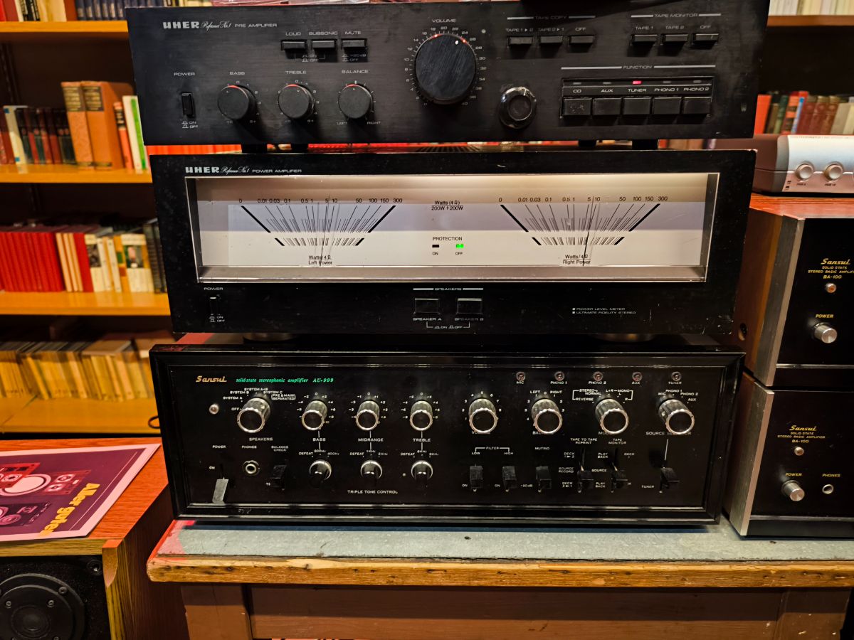 Que no decir también del amplificador Sansui y las dos etapas monoblock también Sansui, llenas de controles, de los cuales carecen los equipos modernos.